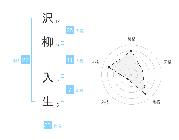 沢柳 入生さんの総格は33画の4点!