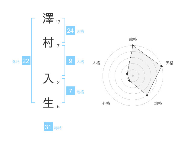 澤村 入生さんの総格は31画の5点!
