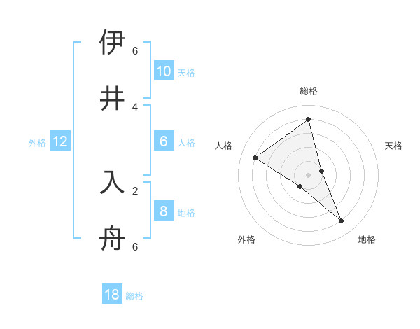 伊井 入舟さんを姓名の画数から五運を鑑定