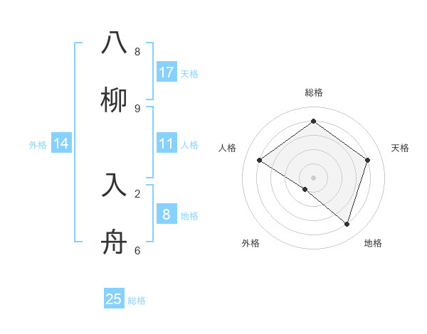 八柳 入舟さんの総格は25画の4点!