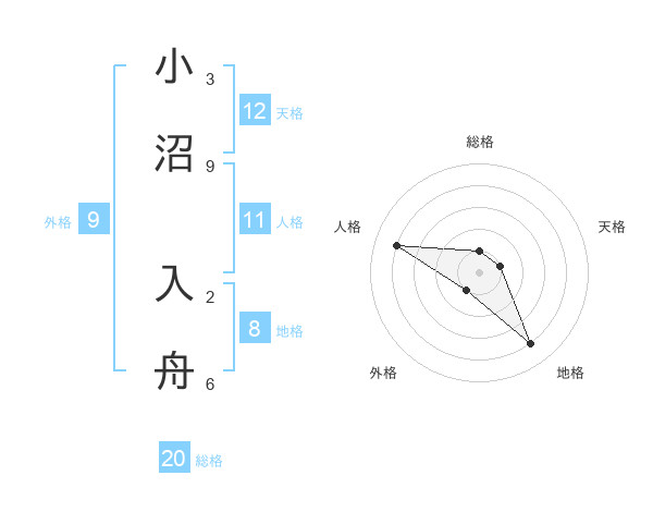 小沼 入舟さんを姓名の画数から五運を鑑定