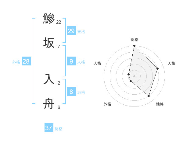 鰺坂 入舟さんの総格は37画の5点!