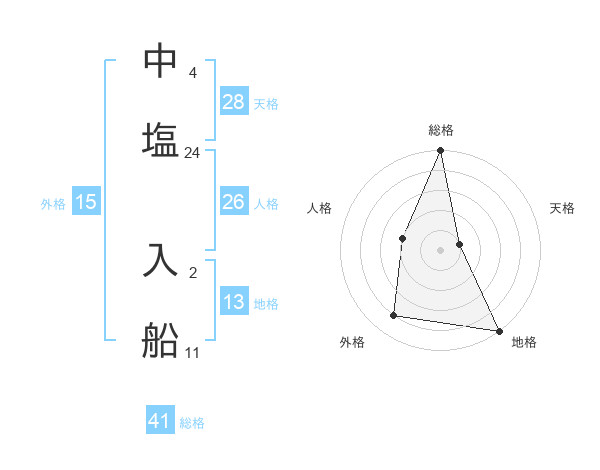 中塩 入船さんの総格は41画の5点!