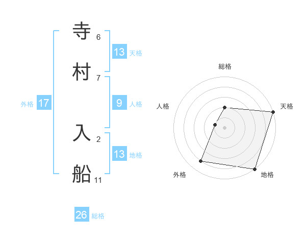 寺村 入船さんの総格は26画の2点!