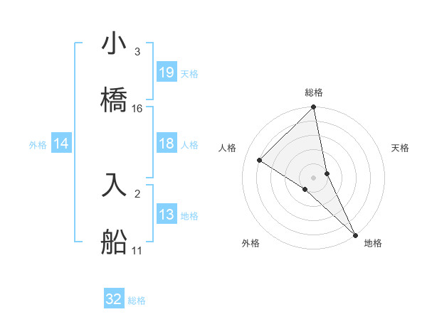 小橋 入船さんの総格は32画の5点!