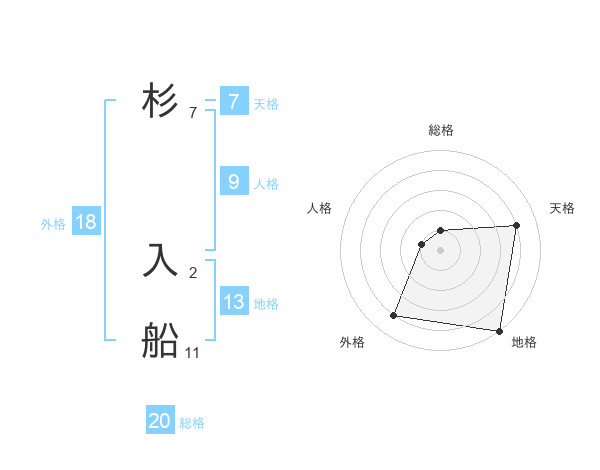 杉 入船さんの総格は20画の1点!