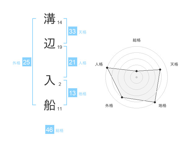 溝辺 入船さんの総格は46画の1点!