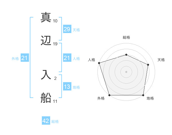 真辺 入船さんの外格は21画の5点!