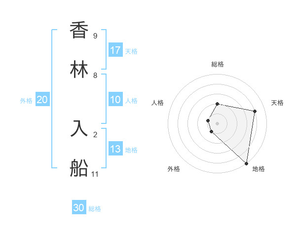 香林 入船さんの総格は30画の2点!