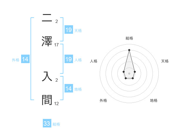 二澤 入間さんの総格は33画の4点!