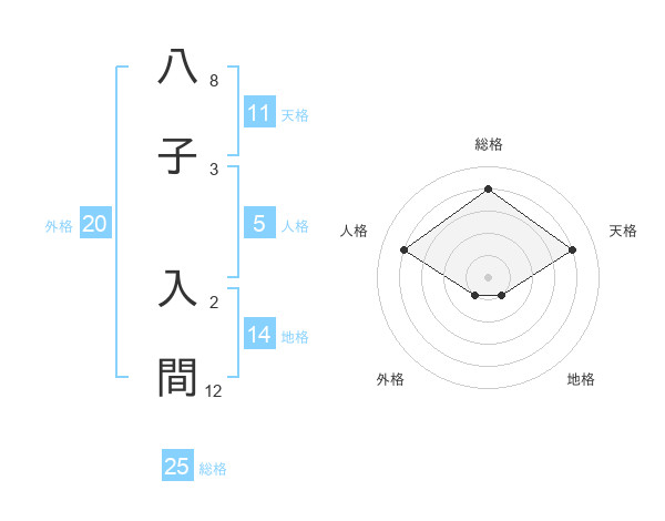八子 入間さんの総格は25画の4点!
