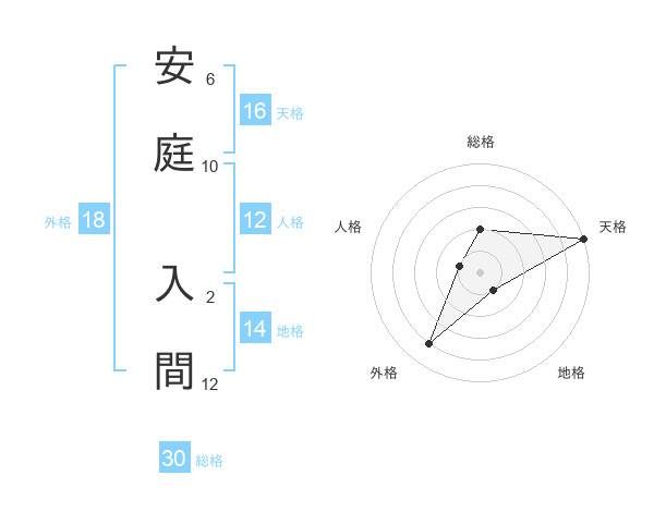 安庭 入間さんの外格は18画の4点!