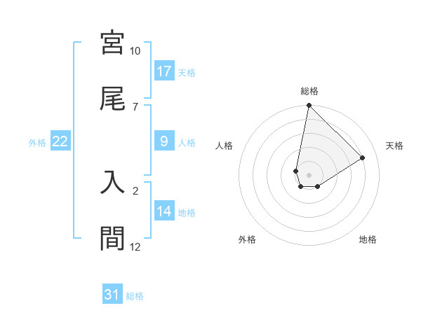 宮尾 入間さんを姓名の画数から五運を鑑定