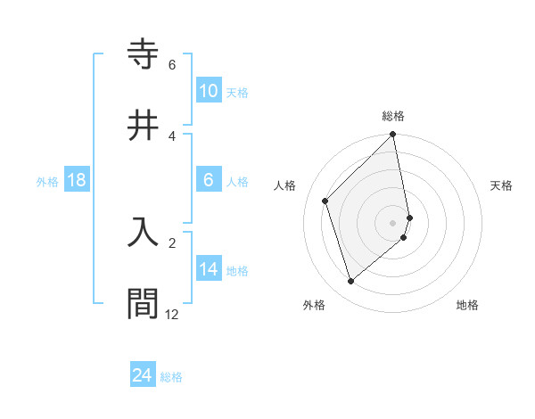 寺井 入間さんの総格は24画の5点!