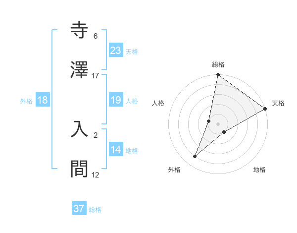 寺澤 入間さんの総格は37画の5点!