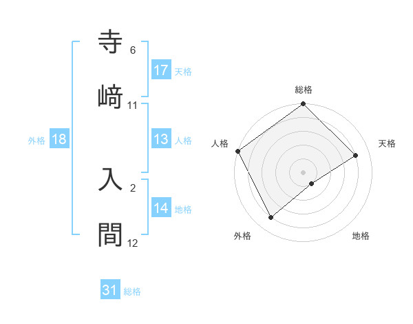 寺﨑 入間さんの総格は31画の5点!