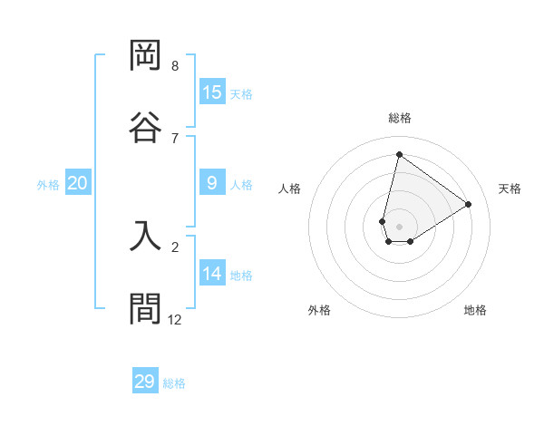 岡谷 入間さんの総格は29画の4点!
