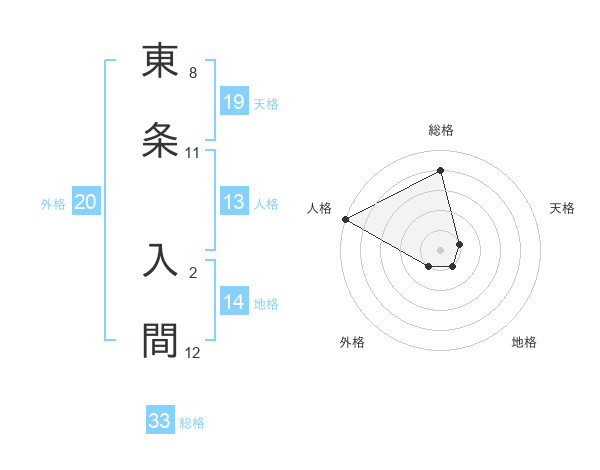 東条 入間さんの天格は19画の1点!