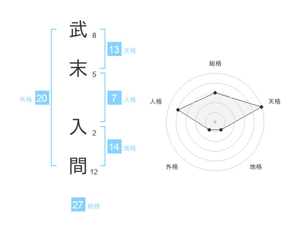 武末 入間さんの総格は27画の3点!