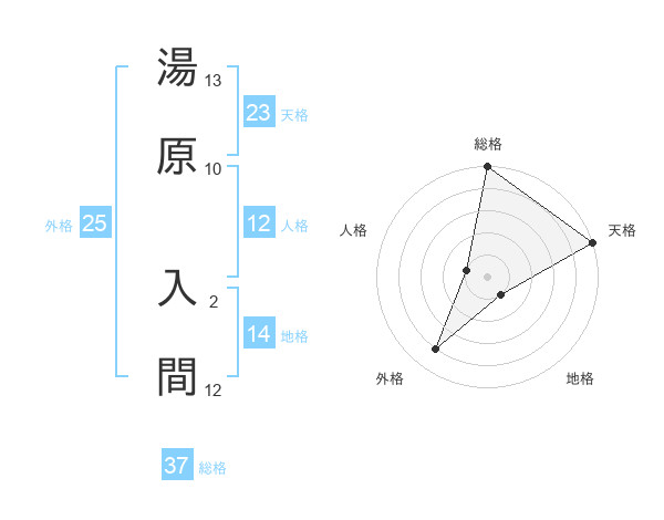 湯原 入間さんの総格は37画の5点!