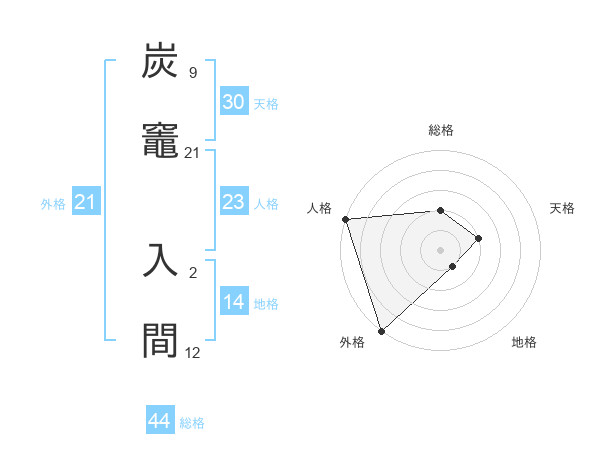 炭竈 入間さんの総格は44画の2点!