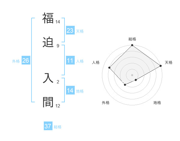 福迫 入間さんの地格は14画の1点!