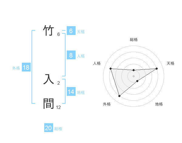 竹 入間さんの地格は14画の1点!