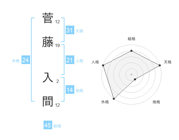菅藤 入間さんを姓名の画数から五運を鑑定