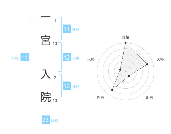 一宮 入院さんの地格は12画の1点!