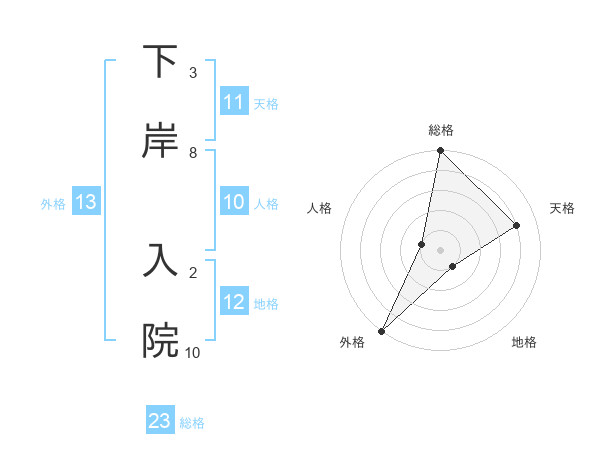 下岸 入院さんの総格は23画の5点!