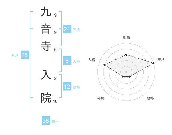 九音寺 入院さんの総格は36画の3点!