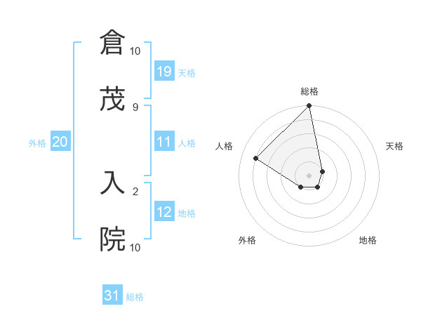 倉茂 入院さんの総格は31画の5点!