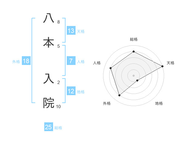 八本 入院さんの総格は25画の4点!