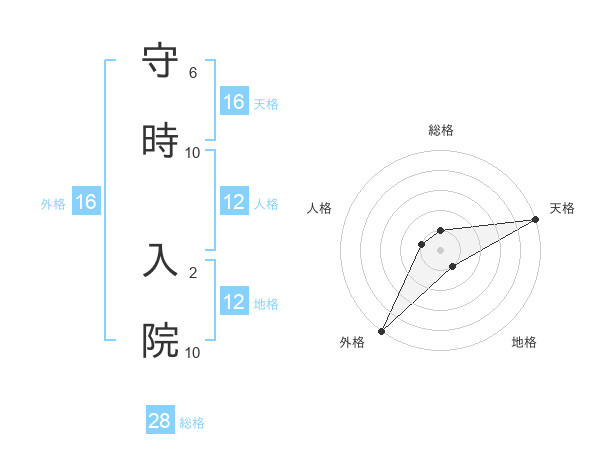 守時 入院さんの天格は16画の5点!