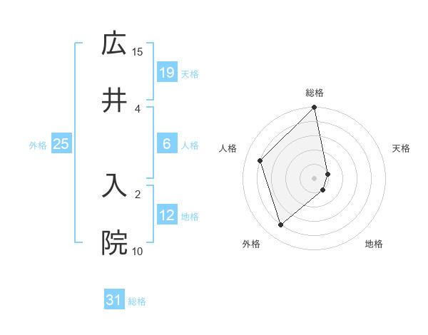 広井 入院さんの総格は31画の5点!