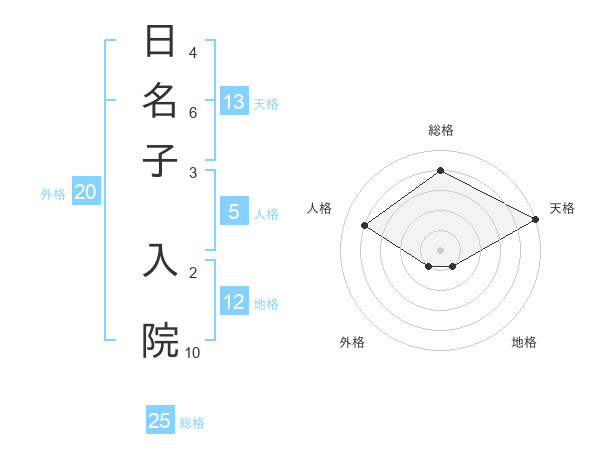 日名子 入院さんの総格は25画の4点!