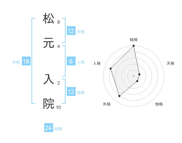 松元 入院さんの天格は12画の1点!