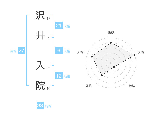 沢井 入院さんの総格は33画の4点!