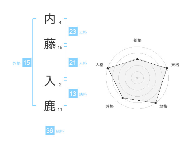 内藤 入鹿さんの地格は13画の5点!