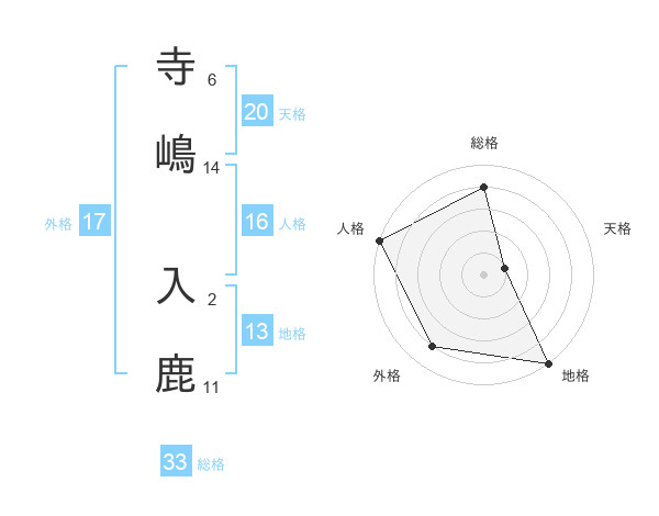 寺嶋 入鹿さんの外格は17画の4点!