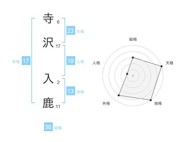 寺沢 入鹿さんの外格は17画の4点!