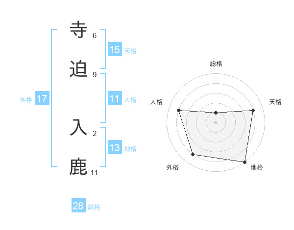 寺迫 入鹿さんを姓名の画数から五運を鑑定