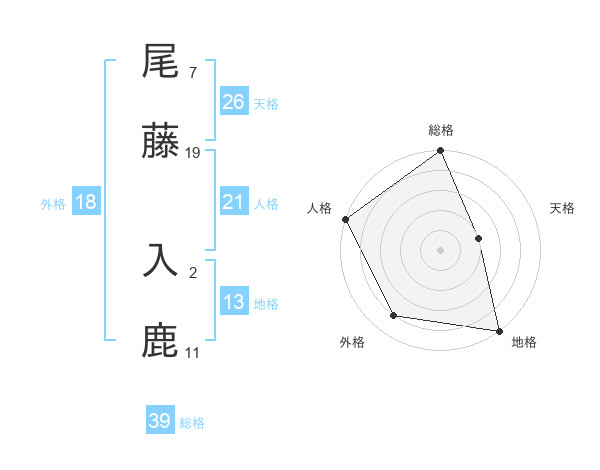 尾藤 入鹿さんの地格は13画の5点!
