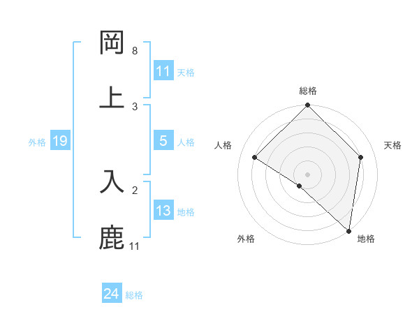 岡上 入鹿さんを姓名の画数から五運を鑑定