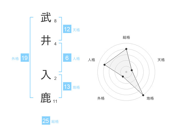 武井 入鹿さんの総格は25画の4点!