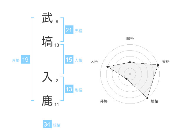 武塙 入鹿さんの地格は13画の5点!