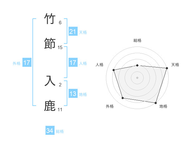 竹節 入鹿さんを姓名の画数から五運を鑑定