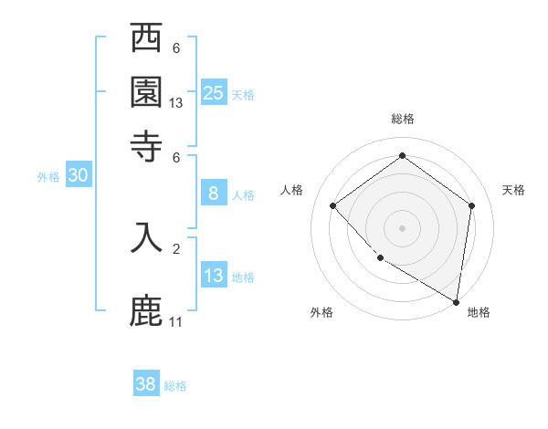 西園寺 入鹿さんの総格は38画の4点!