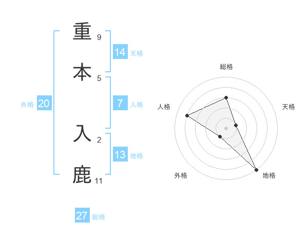 重本 入鹿さんを姓名の画数から五運を鑑定