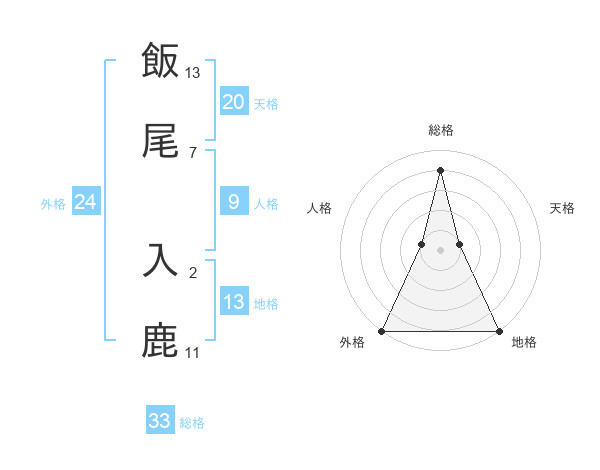 飯尾 入鹿さんの地格は13画の5点!